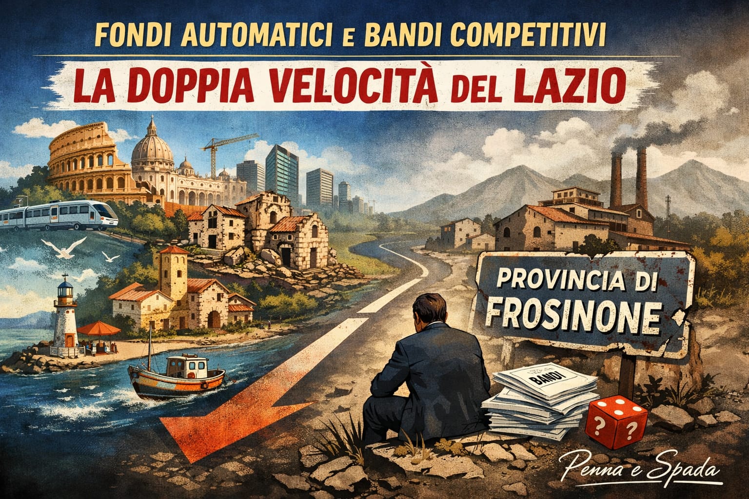 Nel Lazio convivono due modelli. Da una parte territori che intercettano risorse per diritto di status. Dall’altra territori che devono dimostrare ogni volta di meritare attenzione. La Ciociaria è in questo secondo gruppo. Non esclusa per legge, ma invisibile nella strategia.
