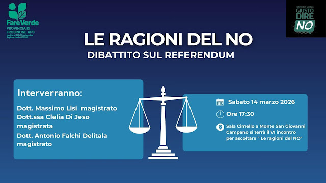 Monte San Giovanni Campano si prepara ad accogliere un appuntamento di grande rilevanza civile e culturale. Sabato 14 marzo 2026, alle ore 17.30, la Sala Cimello ospiterà l’incontro pubblico “Le ragioni del No”, un momento di approfondimento dedicato ai contenuti del prossimo referendum e alle motivazioni che spingono una parte significativa del mondo giuridico e istituzionale a sostenere il voto contrario.