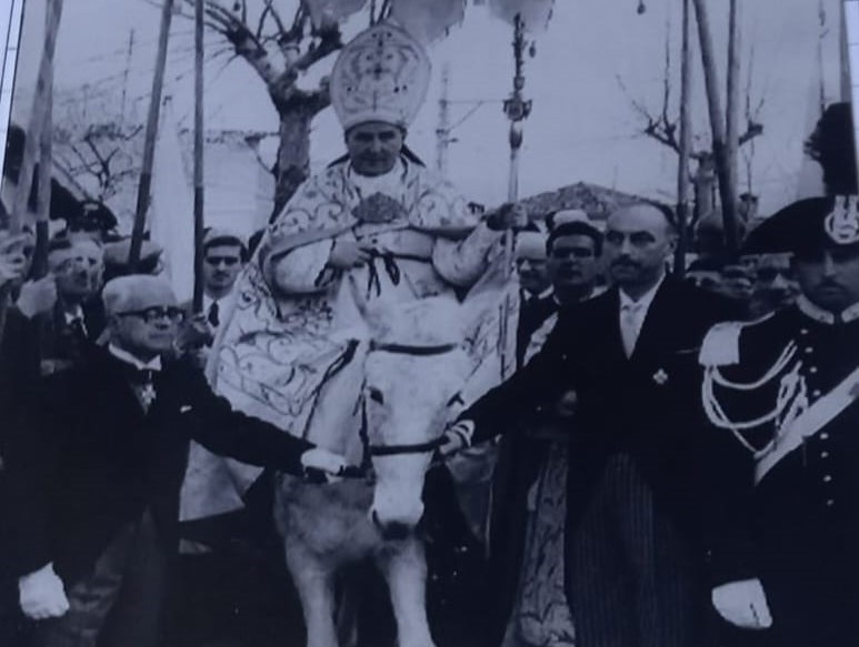 Il vescovo continuerà pertanto con la tradizione dell'ingresso con la mula bianca che venne interrotta dal suo predecessore, e di cui almeno noi ignoriamo il motivo. Abbiamo voluto chiedere ad alcune persone un pensiero a proposito di questa antica tradizione. Il professor Giovanni Minnucci: "Ricordo ancora - è l'ultimo cui ho direttamente assistito, ed ero un bambino - l'ingresso sulla mula bianca di Monsignor Vittorio Ottaviani nel 1962 (nella foto) mentre contestualmente mi sovviene di aver conosciuto Monsignor Francesco Lambiasi presso il Monastero agostiniano di Lecceto a pochi chilometri da Siena (poco tempo dopo il suo ingresso ad Alatri nel 1999), che mi mostrò le foto della cerimonia. Mi spiegarono, quando ero bambino - continua il professor Minnucci - che la tradizione voleva così: era il ricordo tangibile della venuta ad Alatri, nel 1132, del Corpo del nostro Patrono, San Sisto papa e martire, le cui reliquie erano state collocate per l'appunto su una mula bianca destinata a raggiungere Alife, ma che non ne volle sapere di proseguire per la sua destinazione. Molto probabilmente questa tradizione si lega però anche alle cosiddette "cavalcate papali" che avvenivano dopo l'elezione per la presa di possesso della sede episcopale di San Giovanni in Laterano: "cavalcate" che, in secoli molto risalenti, sembra siano avvenute a dorso di una mula bianca", con un evidente significato simbolico perché finalizzato a richiamare l'ingresso di Gesù a Gerusalemme in groppa a un’asina o un puledro figlio di asina".