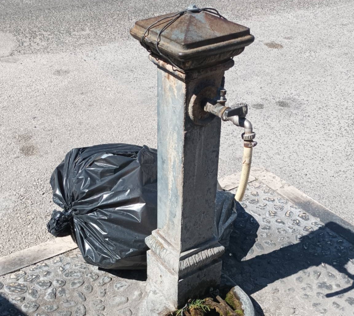 La foto e la segnalazione arrivano dalla frazione Carnello: “Da sei giorni siamo costretti a sopportare questa situazione. Che aspettano a portare via quel bustone nero?”