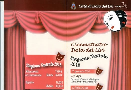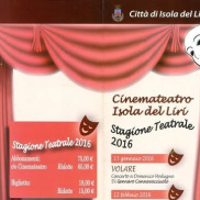 "2016 - Il Cartellone di quella che fu l'ultima Stagione Teatrale organizzata dal Comune di Isola del Liri e dall'ATCL (Associazione Teatrale fra I Comuni del Lazio) al Cinemateatro Mangoni".
