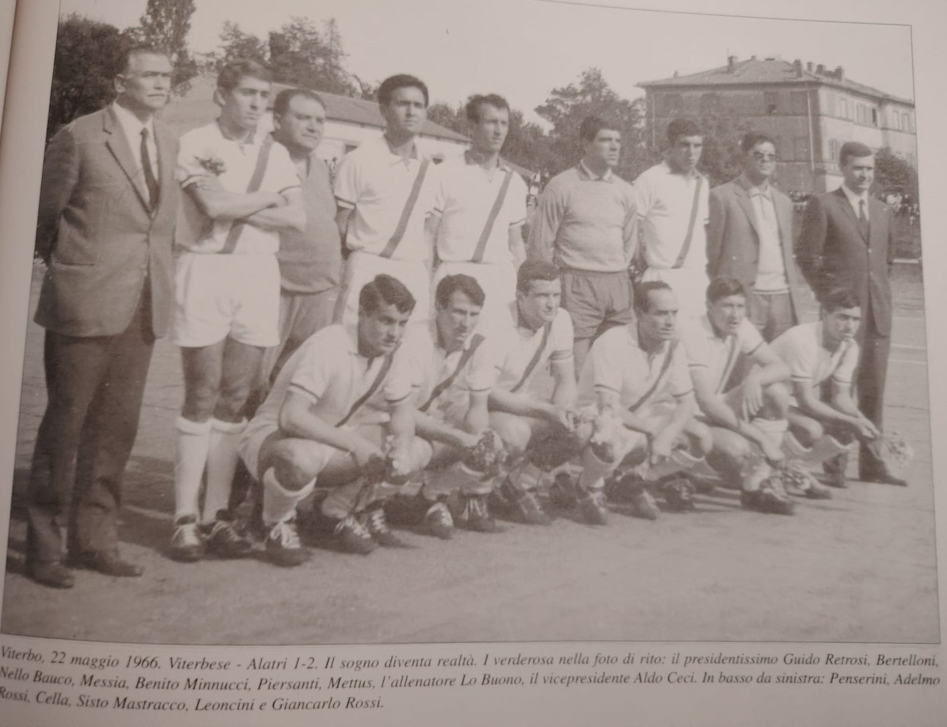 Questa La formazione dell'Alatri vittoriosa a Viterbo: Piersanti, Messia, Mastracco, Minnucci Benito, Cella, Leoncini, Penserini, Rossi Giancarlo, Rossi Adelmo, Minnucci Nello (al secolo Francesco), Mettus. A Viterbo come già scritto Bertelloni prenderà il posto di Nello Minnucci.