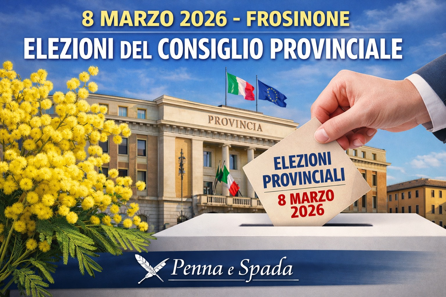 L’8 marzo 2026, giornata simbolo della Festa delle Donne, a Frosinone non sarà soltanto una data dal valore civile e sociale, ma anche un appuntamento istituzionale rilevante. In quella domenica, infatti, si voterà per il rinnovo del Consiglio della Provincia di Frosinone.
