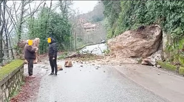 La frana è stata segnalata dai cittadini e sul posto sono intervenuti i Vigili del Fuoco e le forze dell’ordine.