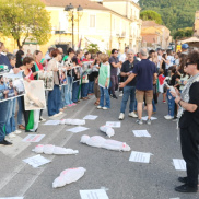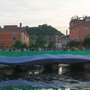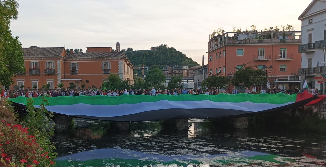 Centinaia di persone, che stavano sul ponte di Napoli a Isola Liri, avvolto in una immensa bandiera della Palestina, lo hanno seguito. Forse sbagliamo ma, per noi, questo è stato il momento più toccante e commovente della riuscita manifestazione che si è tenuta oggi pomeriggio nella Città delle cascate.