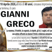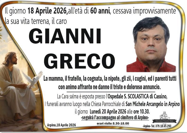 ARPINO - DOMANI I FUNERALI DI GIANNI GRECO