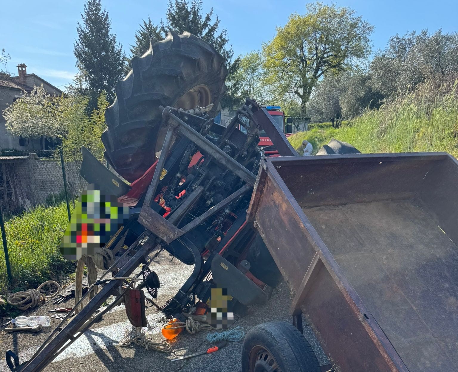 Oggi pomeriggio a Fumone, ore 16.30, sulla strada Vicinale Casette, un trattore agricolo condotto da un 87enne di Alatri si è ribaltato nel bel mezzo della sede stradale.