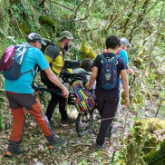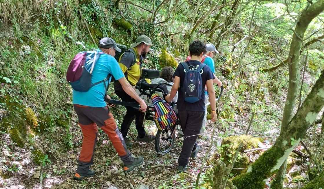 Si è iniziato dal suggerimento di utilizzare una jolette, uno speciale ausilio da trekking progettato per permettere anche a persone con mobilità ridotta di affrontare percorsi naturali, in dotazione al CAI. Si tratta di una carrozzina monoruota, dotata di sistemi di stabilizzazione e maniglie anteriori e posteriori, che consente a più accompagnatori di alternarsi nel trasporto lungo sentieri anche impervi. È un mezzo che rende possibile una partecipazione attiva e condivisa, trasformando un potenziale limite in un’esperienza collettiva.