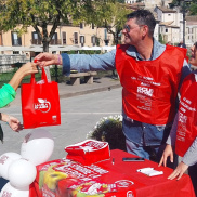Nei 3 giorni distribuzione da parte di 14mila volontari di 3 milioni di mele. Questa mattina i volontari sono stati anche in piazza XX Settembre a Isola Liri (nella foto di Gianpiero Pizzuti). Ci saranno pure nel pomeriggio, dalle 15, alle 19.